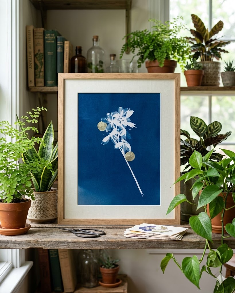 Lou Daprile (they/them) has been enchanted by these deep blue prints ever since their earliest memory where they played with sun paper. They where struck by how magical an experience it was to alchemize elements of the natural world into their own creations. This inspired a life long fascination with the medium.